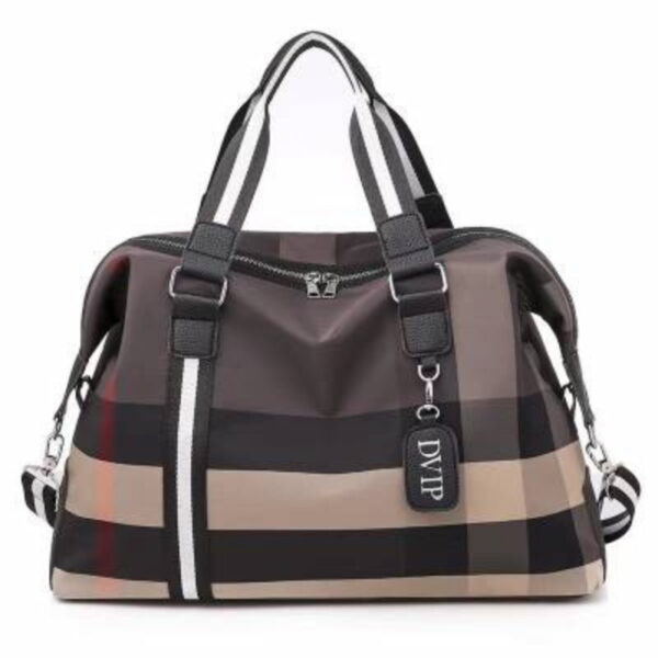 Este bolso está hecho de lona impermeable, perfecto para proteger tus pertenencias en cualquier clima. En el lateral del exterior tiene un bolsillo con cremallera y una cinta para enganchar en la valija, cuenta con bolsillos interiores y una correa ajustable para llevarlo cómodamente sobre el hombro o cruzado. Sus dimensiones de 43cm x 33cm x 20cm lo hacen lo suficientemente espacioso para tus viajes.
